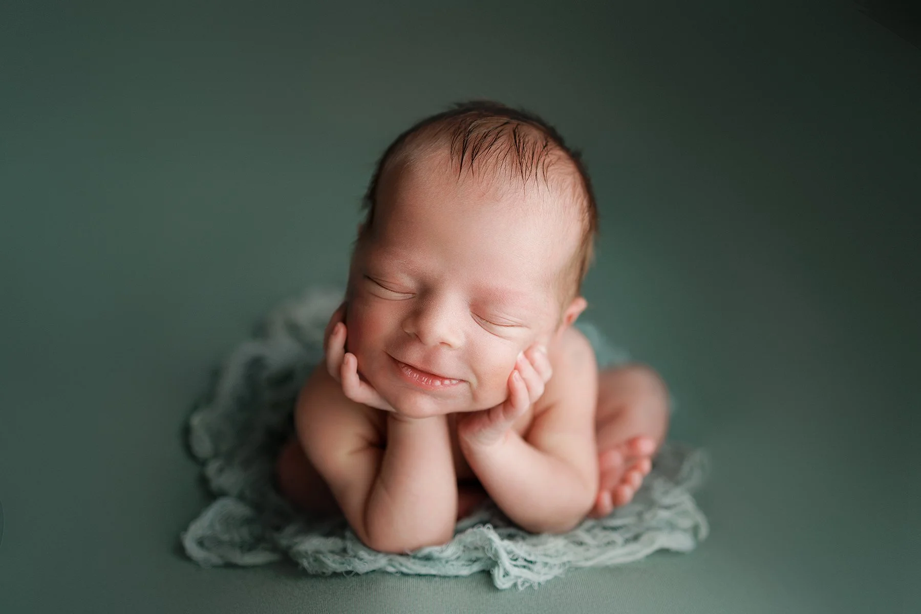 One of the most requested setups I create as a Kansas City newborn photographer is the beloved froggy pose—that adorable position where baby’s little hands cup under their chin and their tiny legs curl forward. Parents love it because it highlights baby’s delicate features, sweet expressions, and all those tiny details you want to remember forever.
