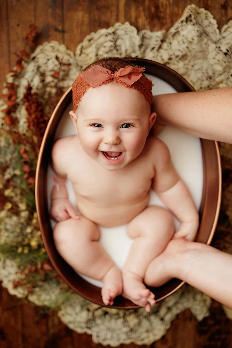 Your baby’s safety is always the number one priority. Professional newborn photographers have specialized training in safe newborn posing, handling, and comfort. We know how to carefully guide your baby into sweet, curled-up poses while keeping them completely secure.